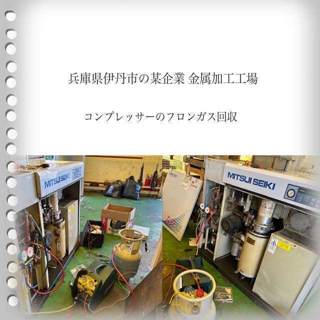 フロン類を含む機器の廃棄にお困りではありませんか?フロンは強力な温室効果ガスです。フロン処理は最低限の義務なので、私たちの身近な地域から守るために必ず充填回収業者にフロン類の回収を依頼していただくよう、今年も有限会社トライサービスをよろしくお願いいたします😊さっそくですが金属加工工場を経営されている某企業様からフロンガス回収のご依頼をいただきました。三井精機のコンプレッサーを廃棄したいそうでコンプレッサーのエアーを冷やすために冷却器が入っているので豊中市からご近所さん🗺兵庫県伊丹市でフロンを回収してきました😉👍