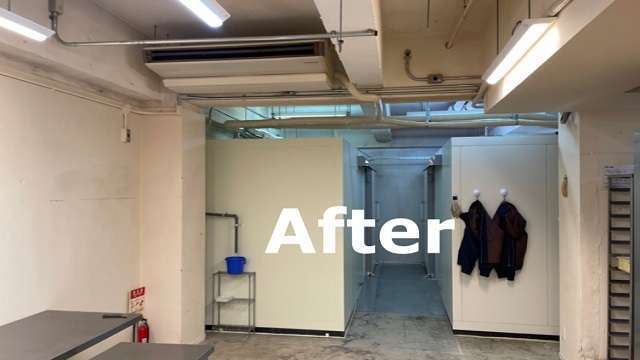 🍂秋です🗺大阪府豊中市のご近所さんである吹田市の洋菓子店🍰オーナー様から二つ目のプレハブ冷凍庫の🔩新設施工依頼🔩を頂きました😊前回と一緒で3坪弱のプレハブ冷凍庫です。