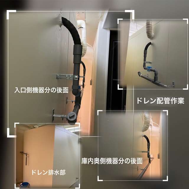 ドレン配管は庫内奥側から後面をまわって排水はバケツ受けです🔧