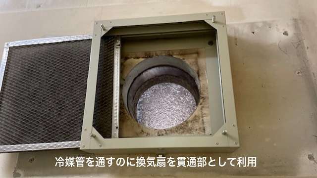設置するフロアは前回と一緒で建物の3Fなのですが🔩今回は冷媒管の貫通部として換気扇を利用します😉