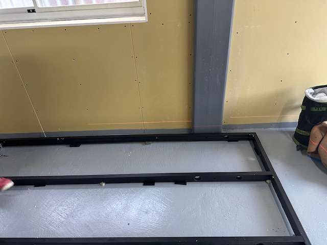 設置場所に基準線を引き、床が水平であることを確認します。樹脂ベースやライナーを使用して床が水平でないと、構造的に問題が起きるため重要な基礎工程です。