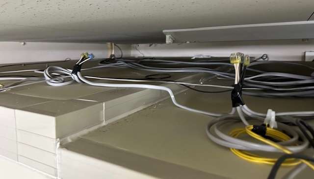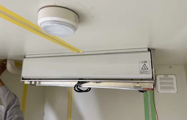 庫内灯・扉ヒーター(冷凍)・冷却ユニットの電源を接続。排水パイプを接続。