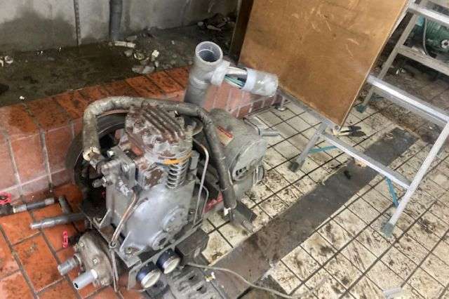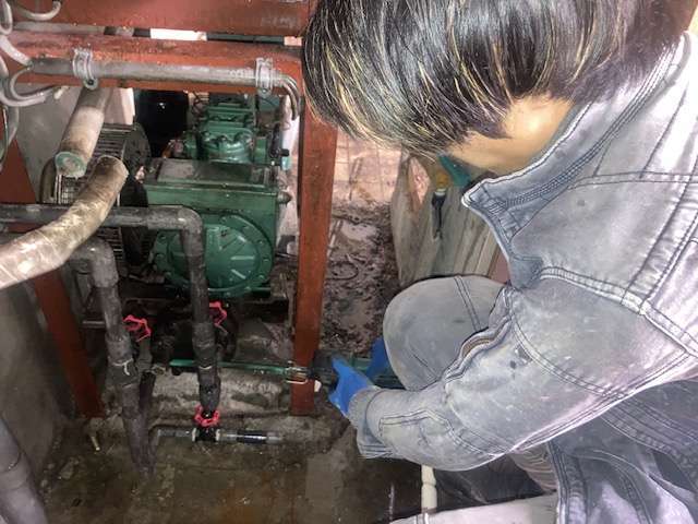 🔧冷却水とコンデンシングユニットを繋ぐ配管を切断🔧
