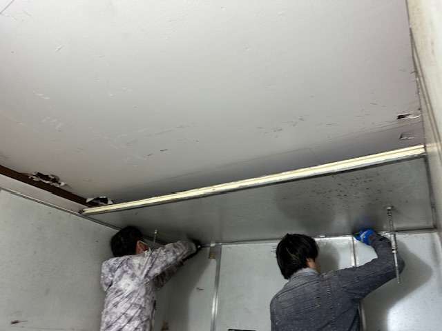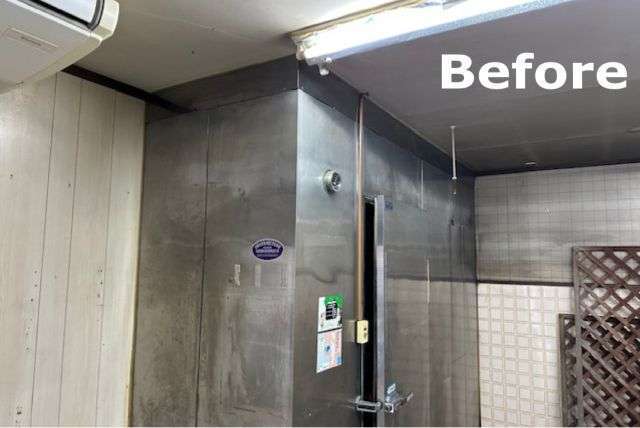 大阪府生野区で精肉店を営まれていたプレハブ冷蔵庫解体撤去のビフォーアフター。一見奥行きなさそうな庫ですが🤔手順通り作業をすすめていきます🔧