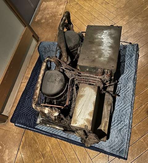業務用冷蔵庫(縦型・台下)の階段搬入出は、100kg超の重量とサイズ、コンプレッサーが搭載しているという構造上から難易度の高い作業です。