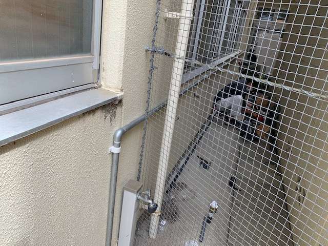 次に洗濯機(^o^)/給水口に給水配管を接続するのに壁に這わしていき٩(ˊᗜˋ*)و