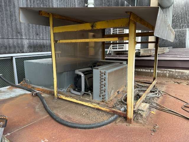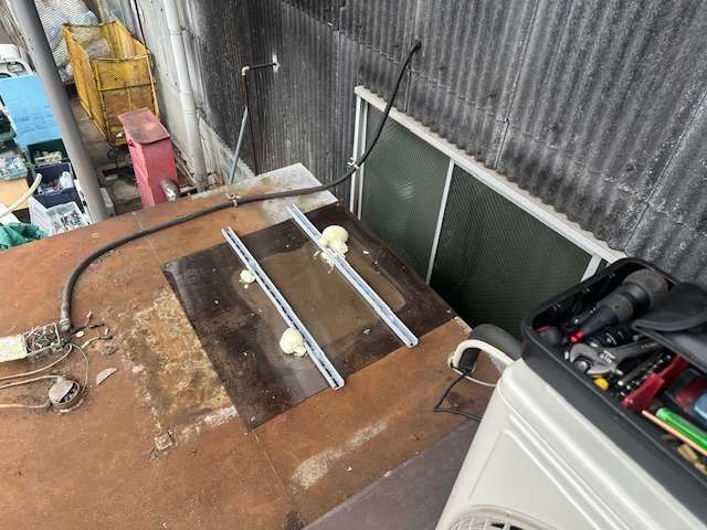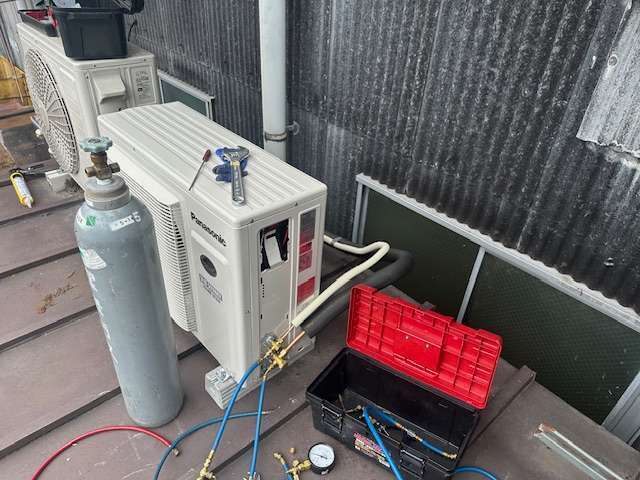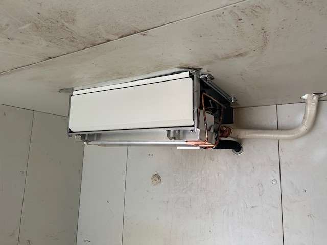 大阪府岸和田市㊙木材工場 プレハブ冷凍庫冷却ユニット 一体型 トップスリムタイプから据置型 スリムセパレートタイプに入替