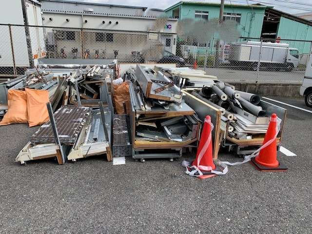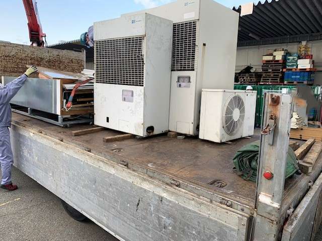 業務用冷蔵ショーケースは内部に冷却機能を担うコンプレッサーや冷媒ガスなどが組み込まれているので、構造が複雑なため解体には時間と労力がかかり工具や保護具の準備、複数人での作業が必要になります。「多段冷蔵ショーケース✖2台」「平型冷蔵ショーケース✖2台」「デュアル冷凍ショーケース✖2台」×室外機3台 解体撤去、作業期間3日間。手作業で解体、ショーケースの内部パーツ、ガラス、金属、プラスチックなどは階段での荷卸し作業です。