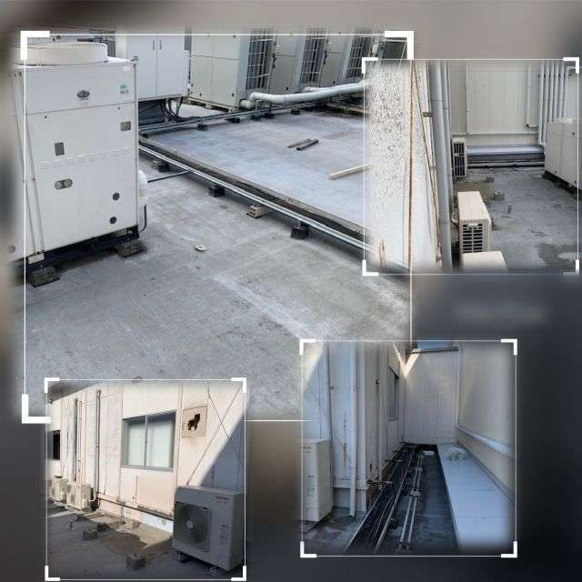 「多段冷蔵ショーケース✖2台」「平型冷蔵ショーケース✖2台」「デュアル冷凍ショーケース✖2台」×室外機3台 解体撤去