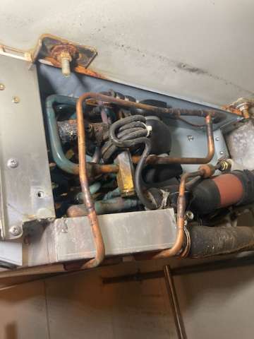 10年目を迎えるといろいろな箇所の不具合や装置が壊れます。事例で多くあるのがユニットの腐食です。庫内の高湿度環境、酸・塩分、食品が発する腐食性ガス(硫化水素など)で穴が空いてガス漏れします。配管も配線も経年劣化します。冷媒管は長年使用してくると固くなりガス漏れの原因、配線も長年使い続けていると焼けてくるので、ユニットを入れ替える際は配管も配線も新しく取り換えます。冷凍機の振動により配管が疲労して亀裂が生じ、漏洩事故の事例も多くあります。設置から10年〜15年以上経過した機器は、経年劣化による漏洩事故が増えますので、定期点検の頻度を上げるか、更新(入替)を検討してみてください。