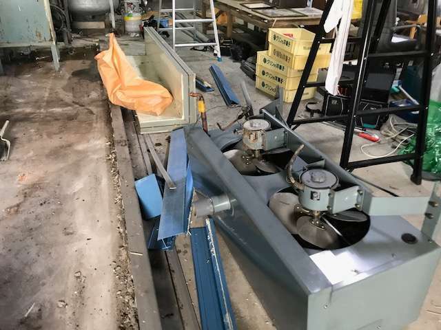 水冷式プレハブ冷蔵庫は水を使用してコンプレッサーから発生する熱を冷却する高効率な業務用冷蔵庫です。冷却水の配管(水配管・水槽)を用いて冷却水を循環させるため、冷却効率が高くて庫内温度が高くなる環境でも安定した冷却能力を発揮し、空冷式に比べてファンがないので排熱や風の騒音がなく、静粛性が高いプレハブ冷蔵庫。写真は30~40年前の古いモデル SANYO水冷式プレハブ冷蔵庫の解体撤去のご依頼でした。産業廃棄物ゴミの量は2,670kg!トラックで5往復、運搬いたしました。